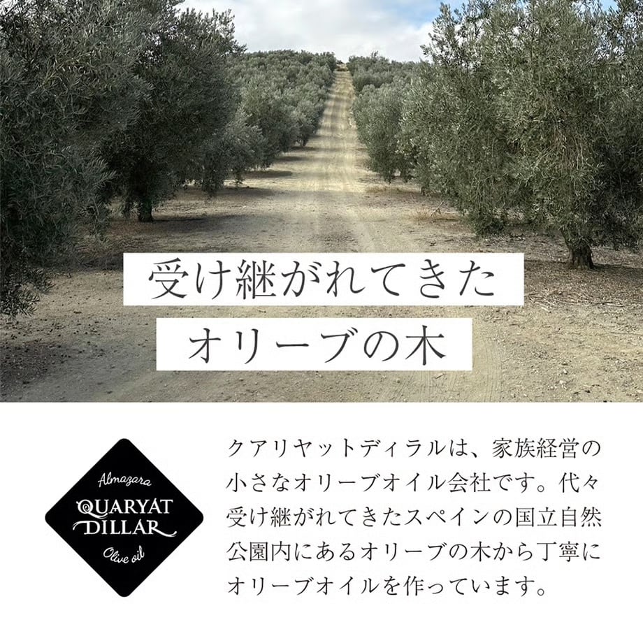 世界一のオリーブオイルの生産国スペイングラナダにある家族経営の小さなオリーブオイル会社「QUARYAT DILLAR」は、2009年に設立されました。